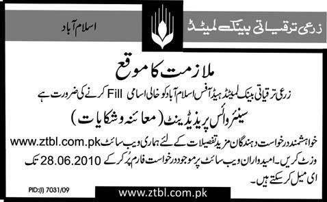Apply as per details in job advertisement. Login to view further details of how to apply via https://www.jobz.pk online.