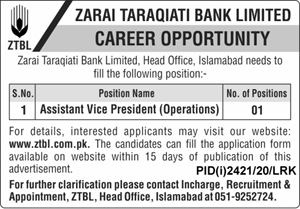 Zarair Taraqiati Bank Limited Jobs 2020
