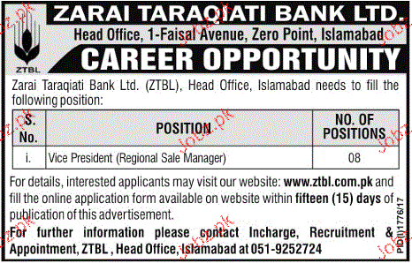 Zari Taraqati Bank Limited ZTBL Jobs