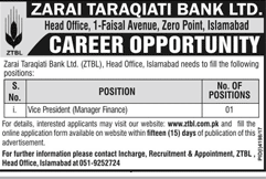 Latest Zarai Taraqiati Bank Limited ZTBL Bank Posts Islamabad 2025