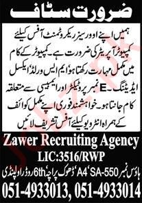 Latest Zawer Recruitment Agency Computer Posts Rawalpindi 2025