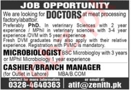 Vacant posts including microbiologist, branch manager, cashier and doctor are announced in Zenith Food Company Lahore, lahore Punjab Pakistan as per 7 July 2024 advertisement in daily Jang Newspaper. Candidates with Mphil, Phd, Bachelor and Master etc. educational background will be preferred.