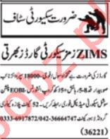 ZIMS Security Pvt Limited Jobs 2020 In Lahore Cantt