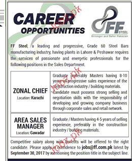 Apply as per details in job advertisement. Login to view further details of how to apply via https://www.jobz.pk online.