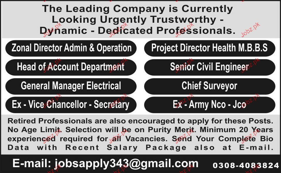 Apply as per details in job advertisement. Login to view further details of how to apply via https://www.jobz.pk online.