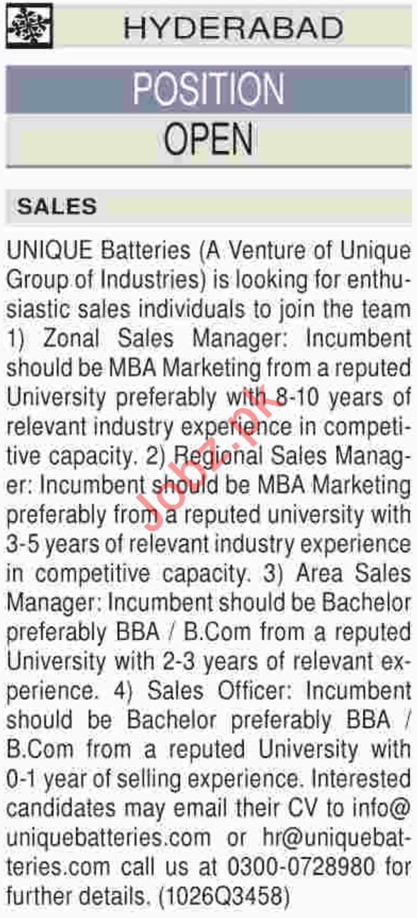 Apply as per details in job advertisement. Login to view further details of how to apply via https://www.jobz.pk online.