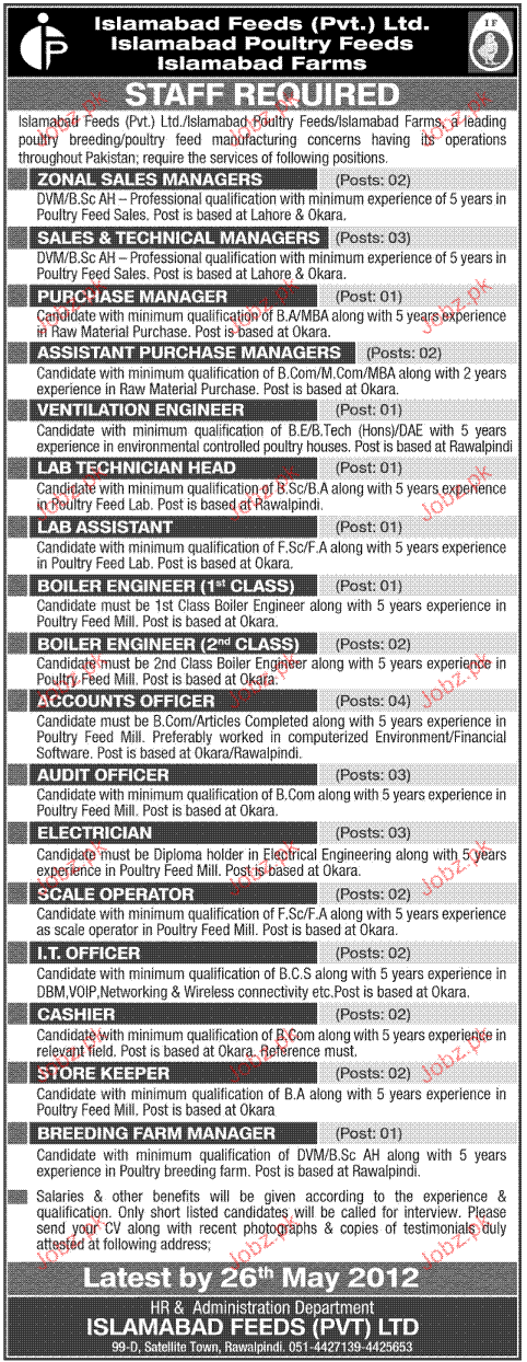 Apply as per details in job advertisement. Login to view further details of how to apply via https://www.jobz.pk online.