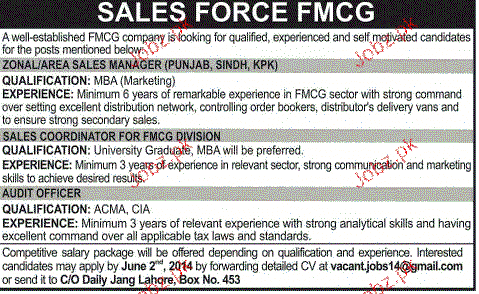 Zonal Sales Manager, Sales Coordinators Job Opportunity
