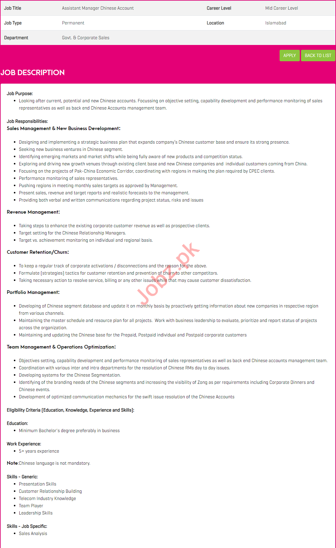 Latest Zong Pakistan IT Posts Islamabad 2025
