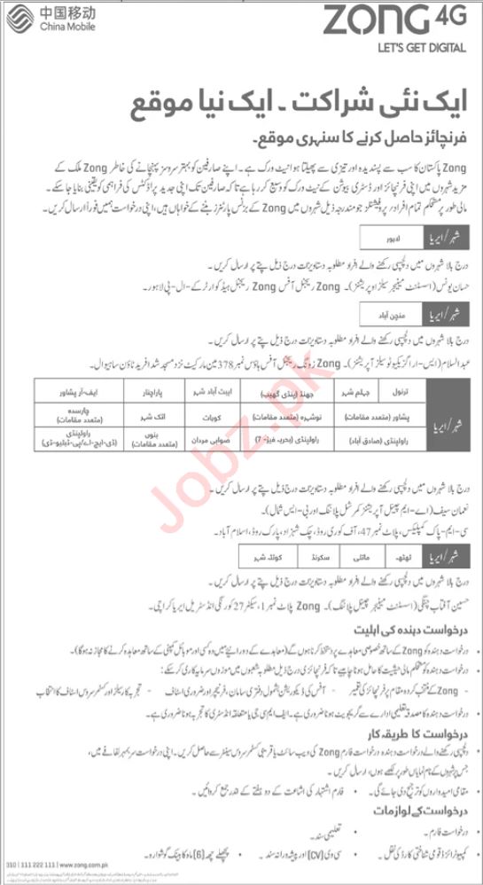 Latest Zong Pakistan Franchise Posts Karachi 2025