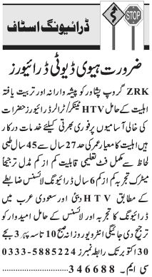 Latest ZRK Group of Companies Driving Posts Peshawar 2025