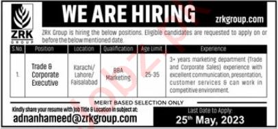 ZRK Group Trade & Corporate Executive Jobs 2023