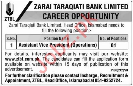 Vacancies in Zarai Taraqiati Bank Limited ZTBL Advertisement November 2020